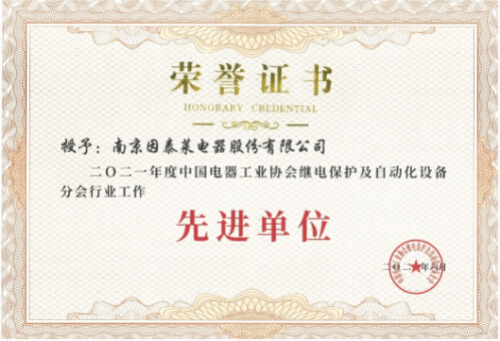 南京因泰萊獲評中國電器工業(yè)協(xié)會繼電保護及自動化設備分會工作先進單位
